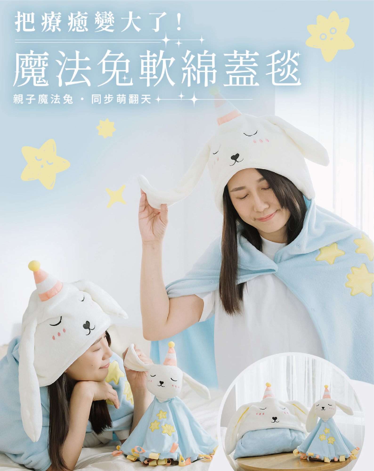 熟悉的可愛模樣,這一次化身為可以一起使用的——魔法兔造型蓋毯